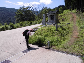 その分岐に到達した時、偶然にも人形山から降りて来られたご婦人お二人に遭遇した。「頂上まで行かないの?」 「時間がないもので・・ 保育園に孫を迎えに行かなくてはならないので・・」 とやり取りの後、「もしかしたら、元さん。」 と言われた。「そうです。」 と答えると、「澤です。初めてお会いしますが、主人は、今、三ヶ辻山へ・・」 と言われて、いっぺんに親しみを覚えてしまった。