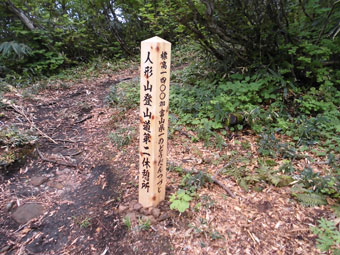 登山口9:55=宮屋敷跡(12:15~20)=人形山と三ヶ辻山の分岐13:40=山頂直下の食事処(13:55~14:00)=人形山頂上(14:05~10)=山頂直下の食事処(14:20~35)=分岐14:45=宮屋敷跡15:35=登山口17:00