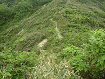 その山を人形山としたのであるが、今の身体の状態と、許される時間では、到底無理だと分かっていたが、コシアブラが気に掛かるところである。今年は、2週間くらい何でも早かったし、昨日が、山開きとなれば、その収穫に期待は少なかったのであるが、それでも行って確かめてみたかった。宮屋敷跡を過ぎても、お方のコシアブラは、その時期を超えて大化けとなっていた。