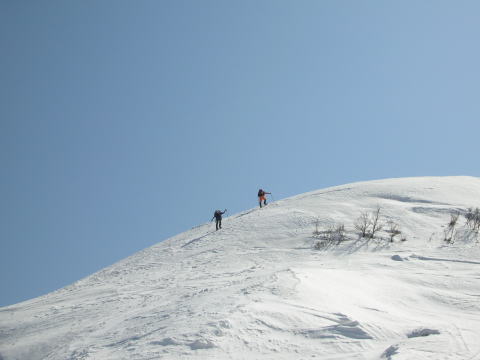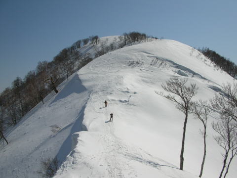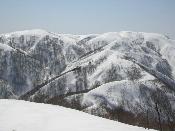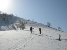 あの熊の襲撃を受け、未だ完治していない長勢君までが、参加の意思表示をしてくれたのであるから、俄然盛り上がった。私としては、2月末の西新山以来一ヶ月ぶりであり、彼の未だ足が痛いを鵜呑みにして、「彼の荷を軽く、そして労わりながら・・」 などと、事前報告をしていたのであるが、その気を揉んだ我々をおいて、先へ先へと行ってしまうのである。正しく好山病であるが、「この先長い彼が、