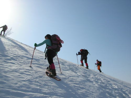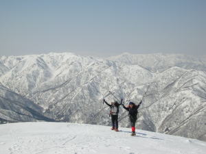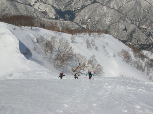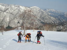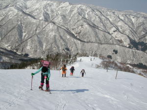 如何様な雪質にも対応出来るよう万端の準備を周到にした今回の山行は、仁王山々頂で25分、白木峰山頂で3時間を楽しみながら、林道を殆ど歩かず最短のルートを歩いたのであるが、参加者一応に感嘆の声をあげながら、八尾の奥深い山を味わったのである。今回は、久し振りに日が暮れぬうちに下山できたのも、レベルアップの一つかもしれない。
