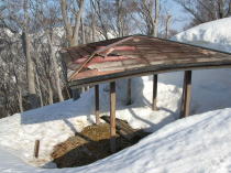 それにしても、3月の「仁王山・白木峰」は素晴らしかった。予想通り白木峰山頂の雪量は少なく、そして硬く穴掘りに苦労したが、黒ネコ設計のもと、短時間で住み心地の良いレストランづくりは、今日も完璧であった。晴天の割には、立山連峰を、はっきり確認出来なかった事を除けば、「後は全て良し。」の今回の山行は、林道を殆ど使わなく、ブナ林の中を長く歩く事が出来た。私が考えていた880mから林道歩きをせず、963mPから、北西に進路を取る実に楽しく気持ちの良いものであった。「好山病・・・」に感謝!