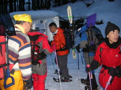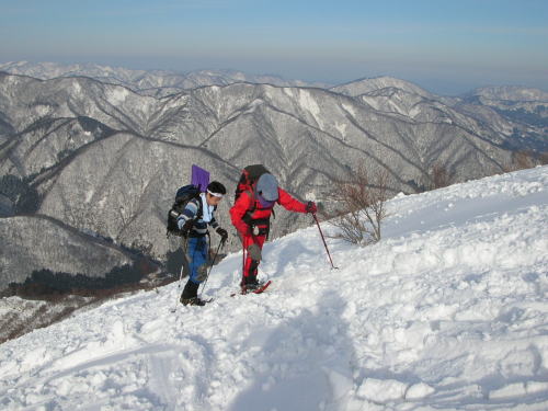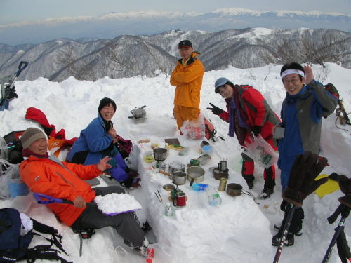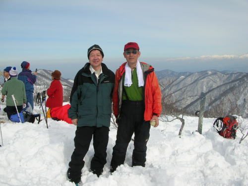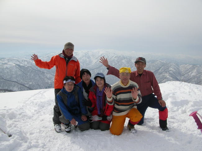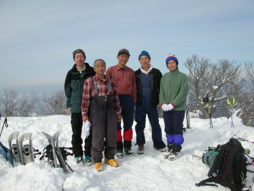 | 1/2に牛岳で出会った上田さんと鵜野さんに、また、 会えた。 昨年の1/1二上山で出会った川崎さん とも会えた。今日は中村さんとも知り合いになれた。 |