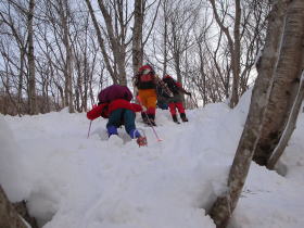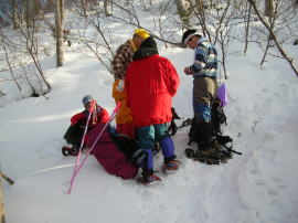| 「お腹すいた・・」と言っているのは・・ | ワイワイ話しながら・・・ | まるでゲレンデ。 もう少し雪量があれば・・・ |