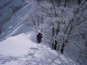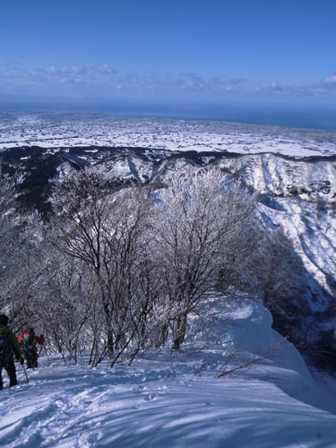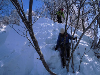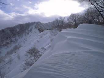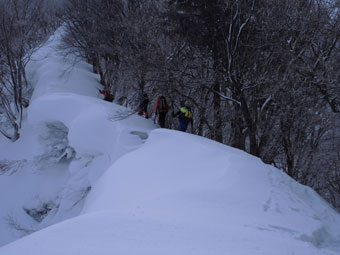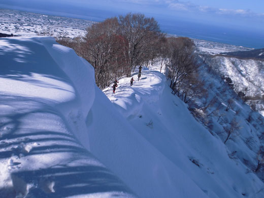 | 雪庇を踏み外さないように・・・ | 雪がしまっているいるから、歩きやすいと思ったが・ |