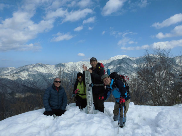 | 登山口駐車場でバッタリ会ったシュンちゃん・玉ちゃんと、始めから最後まで一緒してもらった。 |