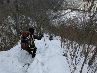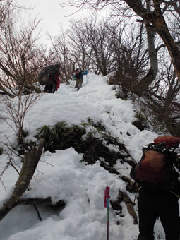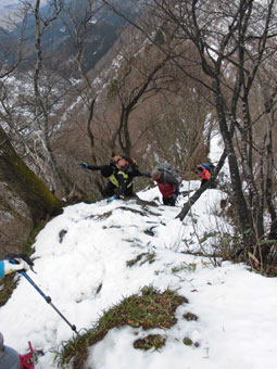 | 6合目で、シュンちゃんと玉ちゃん。 | ちょっと、慎重に・・・ |