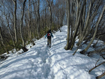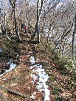 | 玉ちゃんは足早です。 | 下山時は、もっと雪解けが進んでいた。 |