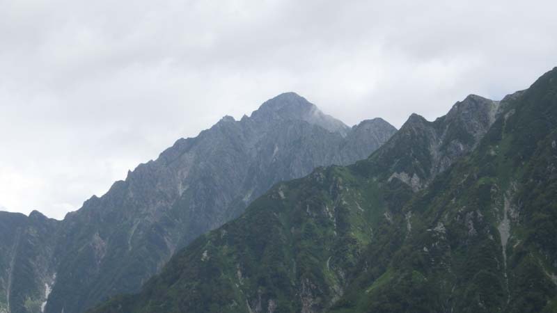新室堂乗越手前から劔岳が眺められた。しかし、ほんの10分ぐらいで恥ずかしいのであろうか姿を隠してしまった。いつもそうであるかのように、上昇気流が立ち込めない先に、稜線または山頂に達しなければ、夕刻か明朝まで現れてくれない事の方が多い。