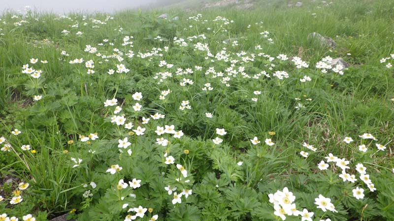 | ハクサンイチゲの群落。 |