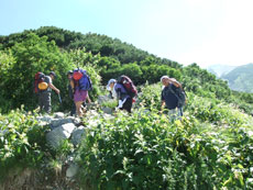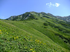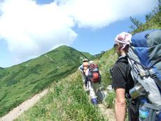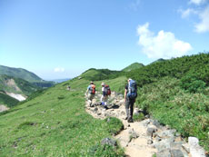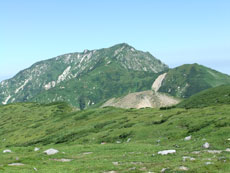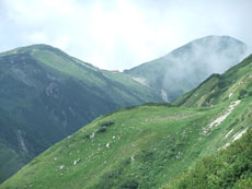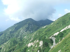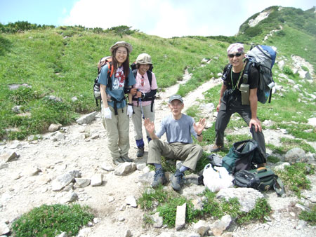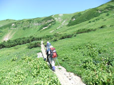 | 今回目指す奥大日岳を望む。 | 雷鳥坂との分岐 | シュンちゃん御一行を見送る。 |