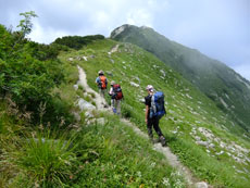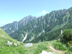 | 快適に山頂を目指す。 | もう一つピークを越えなくては・・・ | 大日小屋が望める。 |