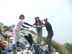 | 再会を約束して固い握手を交わす。 (奥大日岳山頂宴会にて・・) |