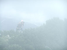 大日小屋を目指す悠女史が、 ガスの中に消えて行った。 |