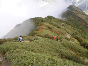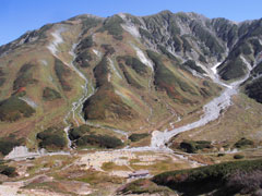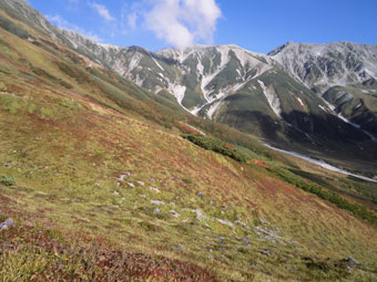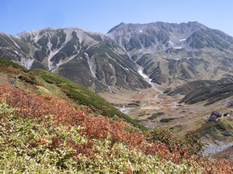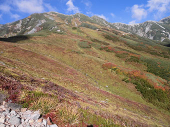 | 浄土川(称名川)を渡り奥大日岳へ・・・・ | 紅葉の始まりかのような色付きを感じた。 |