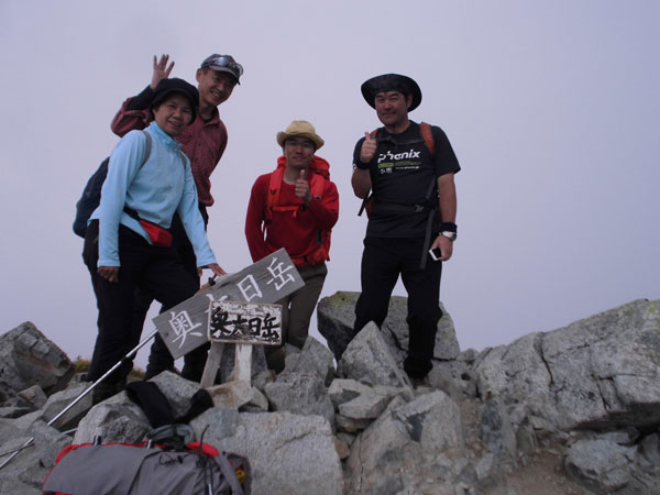 | 奥大日岳山頂で、ゆっくりと語り合った成田・山崎氏と共に・・・ |