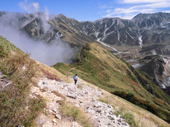 | 何人もの登山者が行き交う。 | 称名峡谷と弥陀ヶ原。 |
