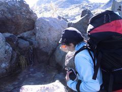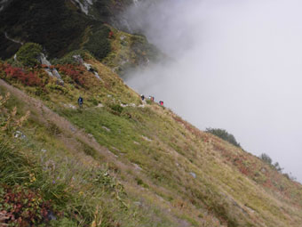 | ソーメン滝 | ガスに覆われそうになっても、ルンルン気分。 |