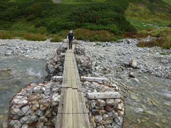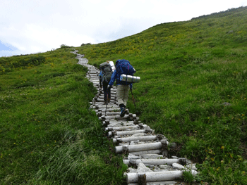 泊まるのは、池田氏を除く5人。そして、テントは4張という贅沢なもの。それは、テン場が近いという事があるが、皆強靭であるからに他ならない。以前、朝日岳に出掛けた時も4人で3張であった事を思い出す。今回は、台風接近だけに、いつもより、張綱の点検を怠らなかった。管理棟に届けを出して、奥大日に向かう。私は、7月8月、今回と今年は3回目となった。