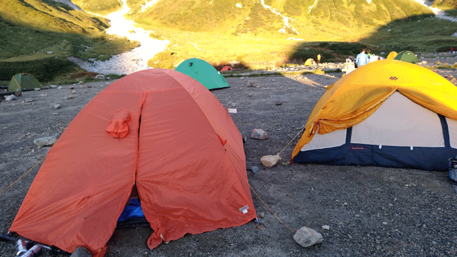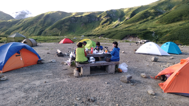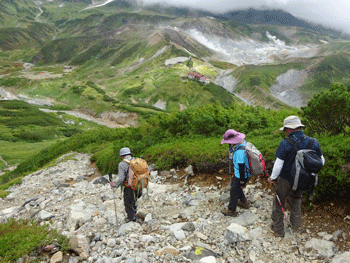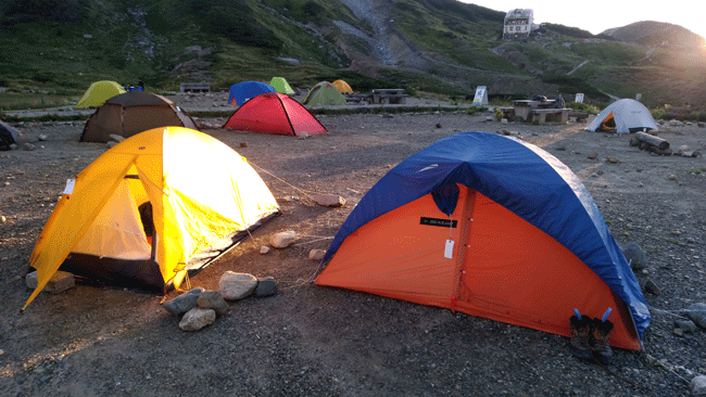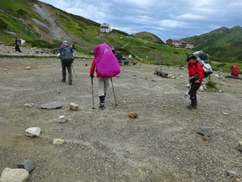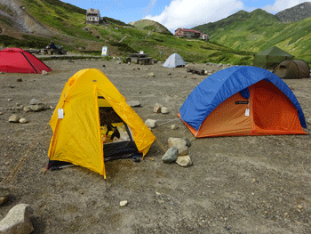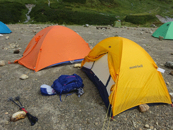 | テントを張り、これから奥大日岳に向かいます。 |