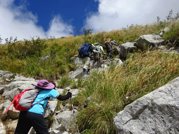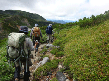 | 前方は、これから登る奥大日岳です。 |