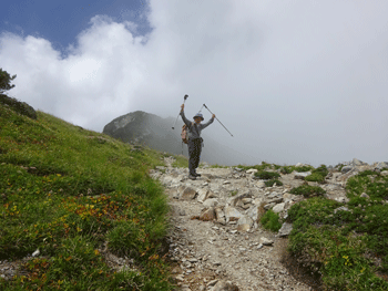 山頂手前で、池田氏の雄叫び! |