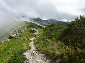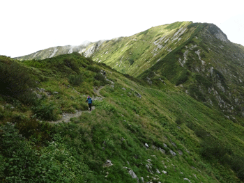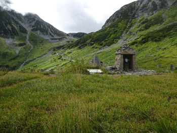 室堂に着けば、重荷は雷鳥沢キャンプ場までである。それではと、池田氏の提案で、みくりが池・雷鳥荘ルートではなく、一の越向かって、室堂山荘の先を左折して、一の越下から雷鳥沢に出るルートと合流するルートを行く事になった。登山者も少なく、静かで快適なルートである。私は、三山縦走で雷鳥沢に戻る時に、時々歩く事がある。