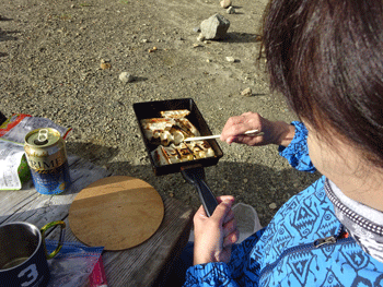 飲んでも飲んでもキリがないと言うものの、何だか寂しいので、テントの中で二次会となる。明朝のスケジュールは、起きてみないと分からないとなったが、やっぱり強い風になかなか眠られなかった。