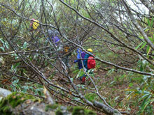 高岡6:15=大平登山口(7:40〜8:05)=大平山頂上(8:45〜50)=虎谷との分岐9:25=ハレルヤ本隊と遭遇9:40=濁谷山頂上(10:05〜10)=大平山三角点(11:20〜12:15)=大平山登山口(11:35〜55)=高岡
