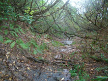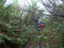 登山道は雨でぬかるんでいるところも・・ |