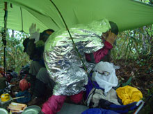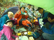 =濁谷山登頂後、大平山に戻り、雨中の宴=