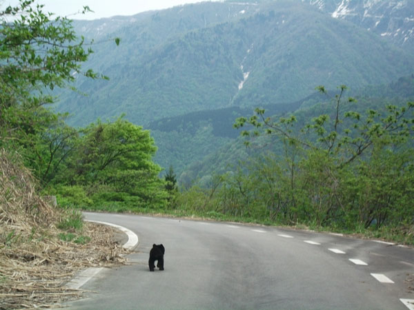 「カメラ」 と言って近付いたのであるが、車の横で死角になった事もあるが、山ノ神はなかなかシャッターを切れないでいた。それは、「子グマの近くには親熊がいる。」 という定説が脳裏を掠めるからである。「窓を開けろ!」 「車から降りてみたら・・」 もやっぱりビビッた。今回のクマとの遭遇は9回目になる。シャッターは切れなかった。