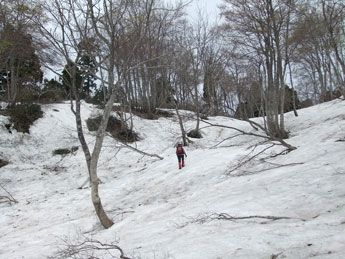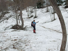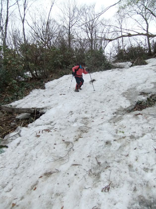 | 大平山々頂からの雪面の降り。 |