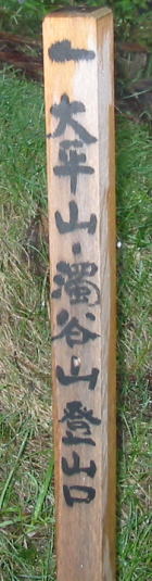 基点の平沢地内には鈍滝の案内板の隣に、「大平登山口9キロ」と小さな標識があるが気を付けないと見落とすかもしれない。基点から5キロ過ぎた所から2キロ程未舗装部分があるが、また舗装道になる。