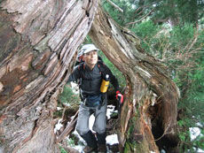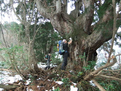 975m付近にある大きな杉を眺める。