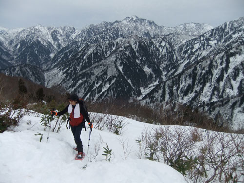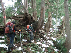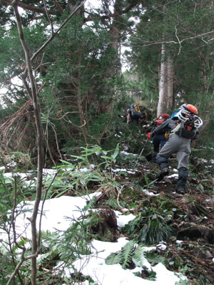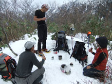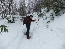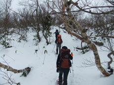 | 1,370m付近でカンジキを着ける。 |