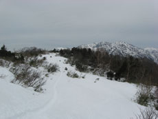 標高795m付近で林道と分かれて右へ。 |