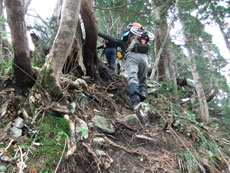 標高差70mくらいの急登場面。