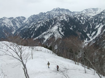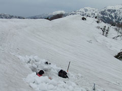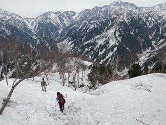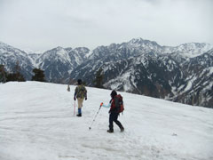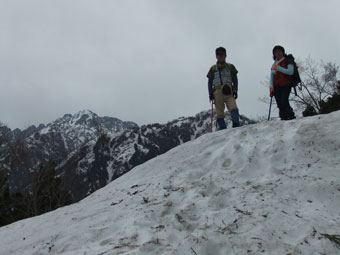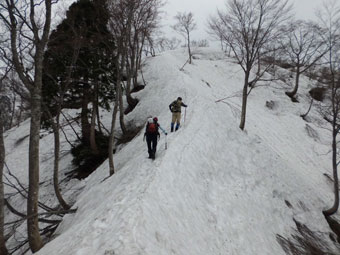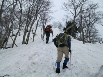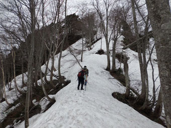 | 林道には、まだ多くの残雪があった。 | コット谷へ向かう林道と分かれて・・ | 始めから急登です。 |