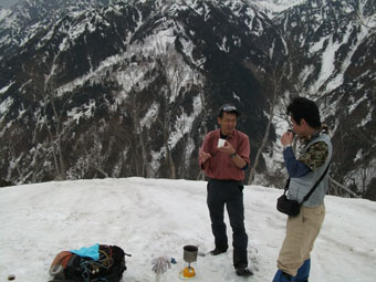 | 「はるちゃん」 15年ぶりの山頂に感慨深げだった。 | 名残惜しいけれど下山準備。 |