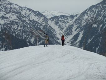 | a.m.9:25 剱岳を眺めながら休息。(1,200m付近) | 1264mのピークを過ぎて20分。 |
