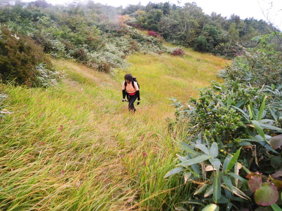 山頂に至る稜線には、僅かながらの風衝草原がある。