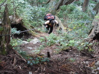 彼も、家庭の事情から、そんなに早くスタートしていないハズだから、一生懸命歩いたなら、山頂で会えるかもしれないと、喘ぎ喘ぎの「山ノ神」にハッパを掛けた。それでも、のろりのろりの上に、「頭を木にぶつけた。」 と言っては悲鳴を上げていた。