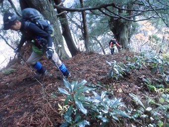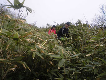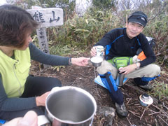 11/10 4時過ぎに起きて、月や星が輝くのを見るに付け、今日の大熊山からの大展望を期待したが、河原氏と出会い登山口に到着した頃には、降らなければ良いに変わった。時々、晴れ間が覗くのではないかと期待を持たせてくれたが、いつもの通り、降りる頃、また、降りてから良くなるパターンとなった。