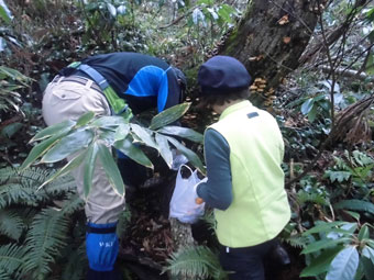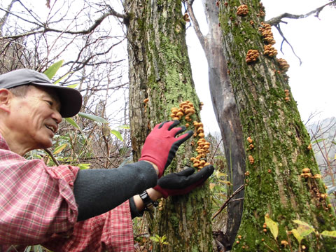 下山時も、ナメコ採りに終始。「あそこにも、ここにも・・」 と声がこだました。
