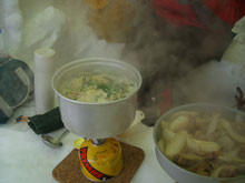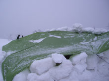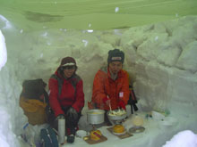 山頂で寒さを凌ぐのにシェルターを造った。