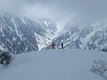 予報に「晴れマーク」 が出ていただけに、もしかしたら、「剱岳が望めるかもしれない。」 の淡い希望があったが、降雪によって打ち砕かれてしまった。「剱岳どころか、毛勝の山々」 も全く望む事が出来ず「静かな山」 を味わっただけであった。山頂でのシェルターは、初めてお会いした村中女史にしてみれば、「へぇ~」 というものであったかもしれないが、「富山へ・・・」 の心を繋ぎ止める材料になったかもしれない。