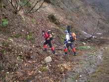 3/23 「え~っ、雪がないの?」 桑首林道入口での彼女らの第一声であった。標高700mくらいから雪がない。それに先週の高温続きで、もしかしたら、稜線(1000m)まで、雪がないかもしれないと思っていたが、林道への車の乗り入れが出来るとは思っていなかった。そのお陰で、往復1時間半は助かった?事になった。