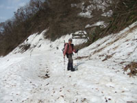 しかし、稜線に出ても、それらしき所は全くなかった。カクレ山、また土倉山方面に行っての事故なのかと思う程、踏み抜きや滑落跡はなかった。