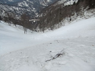1,130㍍付近から北西方面の谷筋に向かってトレースが続